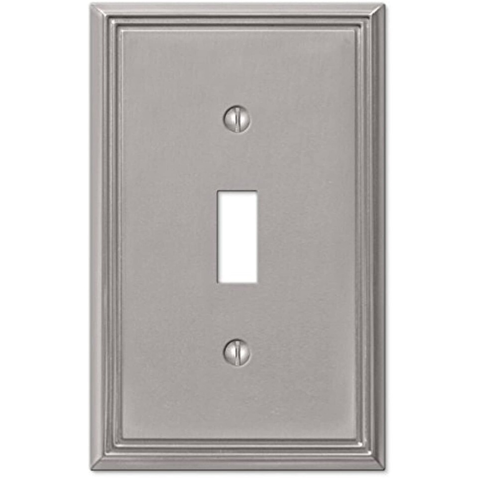 Amerelle Wall Plate, 1-Toggle, Series: Metro Line, 4-7/8 in Length, 3 in Width, 1 Gangs, Cast Metal, Brushed Nickel, Screw Mounting, Includes: Matching Screws, UL Listed