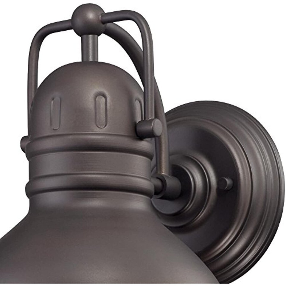 Oil rubbed bronze finish on steel with prismatic lens creates a industrial vintage look