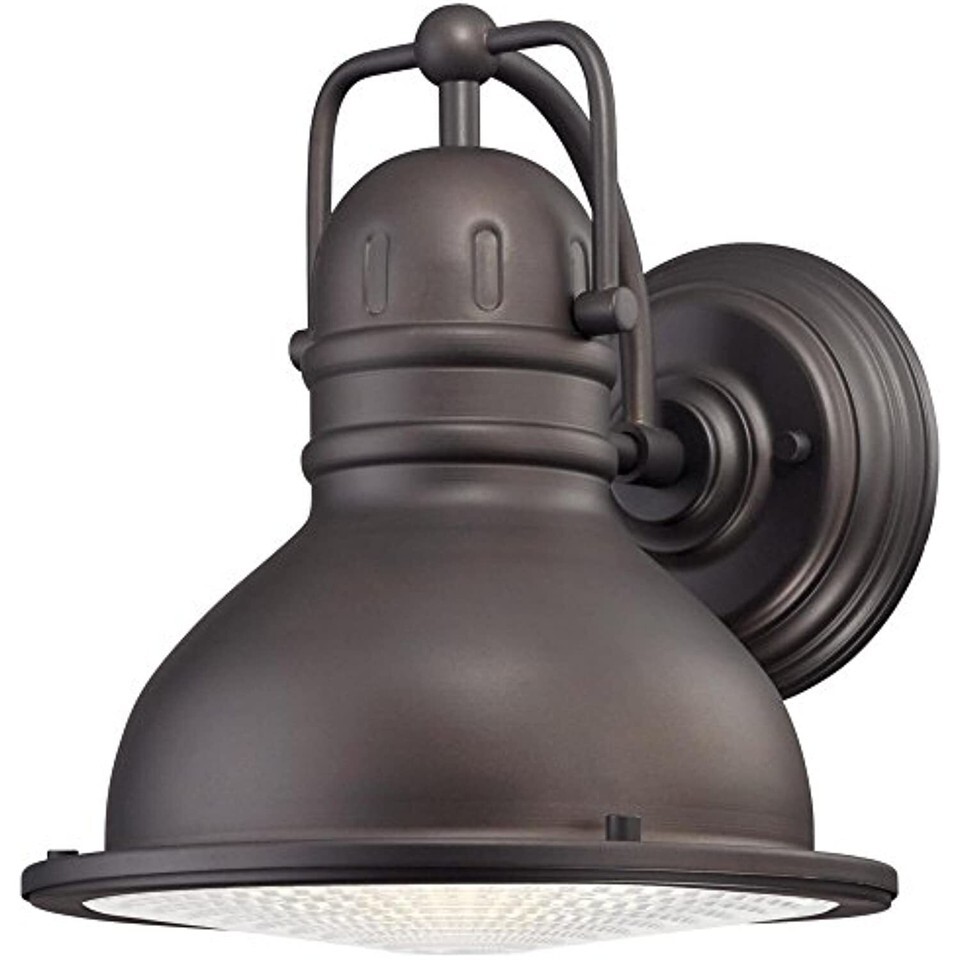 Offering industrial details in a energy efficient design, this Westinghouse Orson One-Light LED Outdoor Wall Lantern evokes vintage charm. No bulbs to replace, this fixture includes integrated LED technology. Consumes only 9 watts, 79% less energy than an incandescent fixture, with the brightness equivalent to 1-40W or 2-25W incandescent bulbs. Made of steel, this lantern with oil rubbed bronze finish and prismatic lens complements styles from vintage to industrial farmhouse to nautical. This lantern directs light downward which reduces light pollution making it dark sky friendly. Install it in your front or back entryway or by your garage door. You can also use it to create a welcoming accent for your porch, deck, patio, balcony, or side entrance. Wherever you place it, you will enjoy the lantern's warm light and vintage look while saving money. The lantern is 11-5/8 inches height by 10-5/8 inches wide, it extends 11-5/8 inches from the wall, and it measures 5-1/16 inches height from the center of the outlet box. The back plate measures 6-3/16 inches (D). It includes a 9 watt integrated LED. This Westinghouse lantern is ETL/CETL listed for safety and is approved for wet location. It is backed by a five-year limited warranty against defects in materials and workmanship. Westinghouse is a trusted, global brand. Westinghouse knows lighting and offers products with exceptional quality, reliability and functionality. Product reference number 62046.