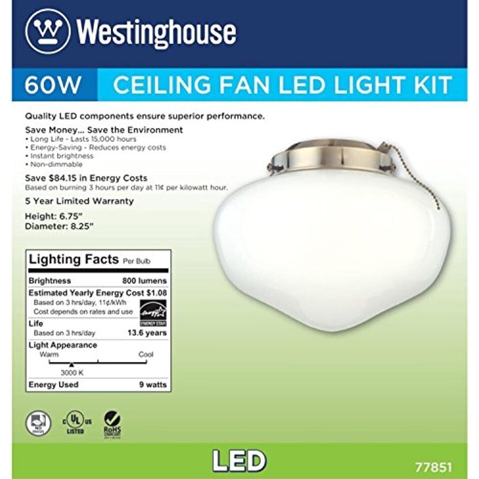 Westinghouse Lighting 7785100 LED Schoolhouse Indoor/Outdoor Energy Star Ceiling Fan Light Kit, Antique Brass Finish with White Opal Glass