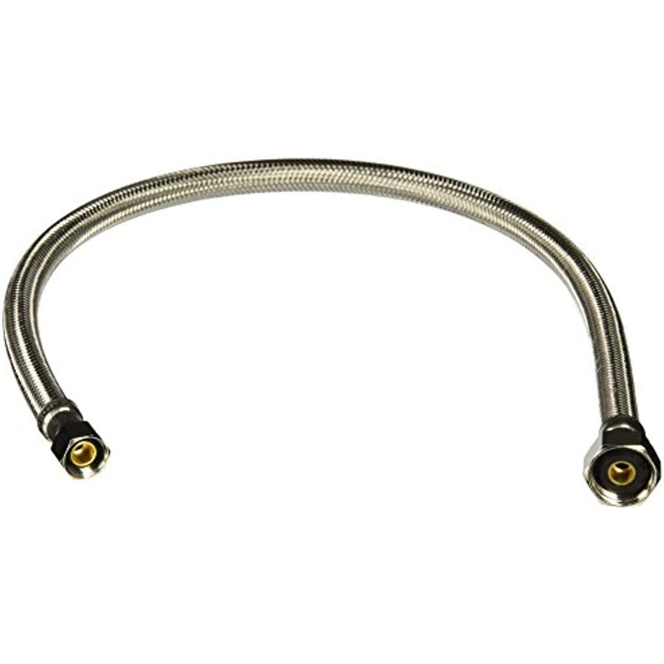 Homewerks braided stainless steel faucet connector features a 3/8" compression x 1/2" female iron pipe X24". bulk.