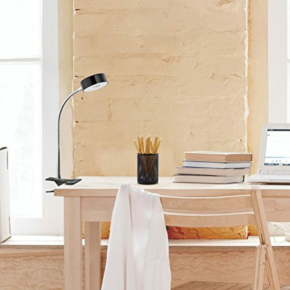 Globe Electric's LED for Life Glossy Black Clip Lamp is an ideal option for desk lighting. The chrome gooseneck is easily adjustable to direct light wherever you need it the most while the metal clamp is perfect to mount on study tables, workstations or office desks. The 6-foot cord allows you the ability to place the light anywhere you want regardless of where your wall socket is located. The on/off switch is conveniently located at the base of the lamp for quick and easy use. Being Energy Star rated this lamp will save you up to $77.00 in energy costs. Using just 5 watts of electricity and providing you with a nice warm light, the integrated LED provides just the right amount of light for any of your desk lamp needs. Since 1932 our commitment is to our consumers, partners, associates, and our product. Every day we strive to develop and sustain the Creative energy that has kept us going for more than 80 years. Globe is a leader in high quality and innovative products; with the pace of technological change increasing globe continues to invest in research and development. Specializing in the design and manufacture of light bulbs, luminaires, and electrical products, globe has over 20 production facilities all over the world. Globe works hand in hand with the leading retailers in the world to make sure the product presentation is flawless. The recipient of numerous achievement and design awards, Globe Electric Works tirelessly to design and manufacture products that deliver beautiful appeal, stellar performance, easy installation, and exceptional value. Globe Electric - the Creative energy Company.