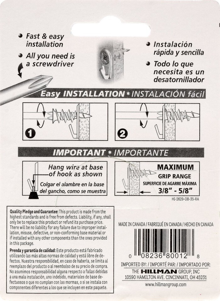Hillman 122400 Large Self-Drilling Brass Wall Driller Picture Hangers 50lbs Pac