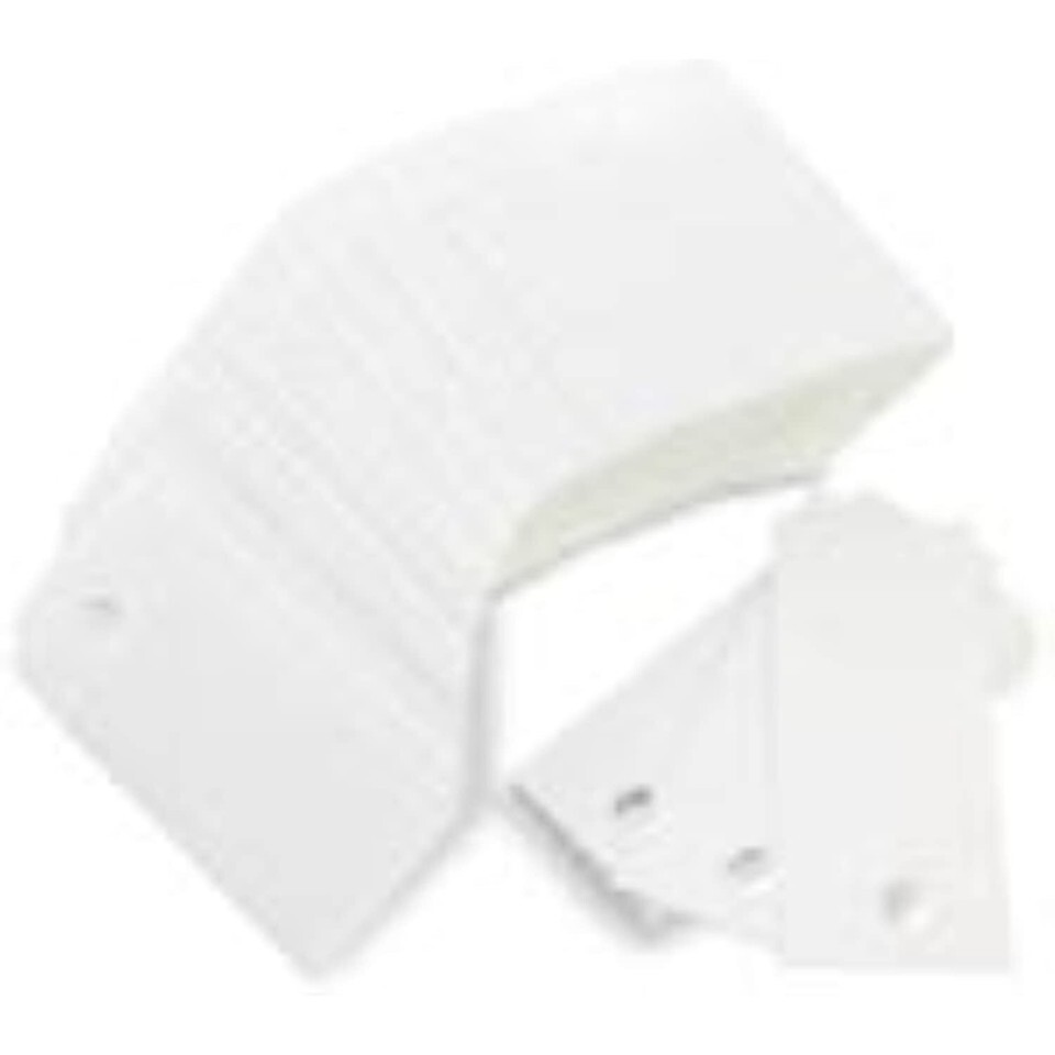 2500 pack, 1.2" x 2-7/8", white plastic, location ticket holder, 1 hole to fit on peg hooks, perforated to detach, fits into the shelf channel of Lozier Childs fixtures. Manufactured in United States.