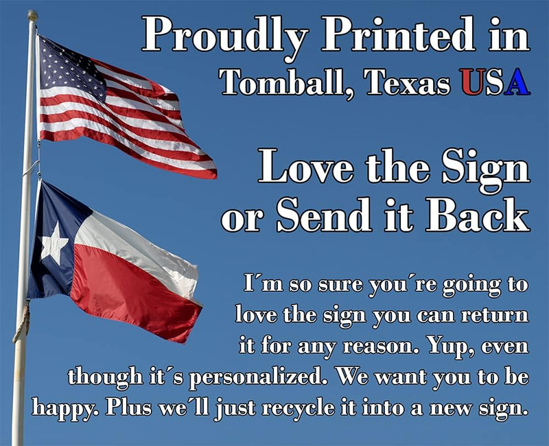 LOVE IT OR RETURN IT - I'm so sure you're going to love the sign you can return it for any reason. We want you to be happy. Plus we'll just recycle it into a new sign.