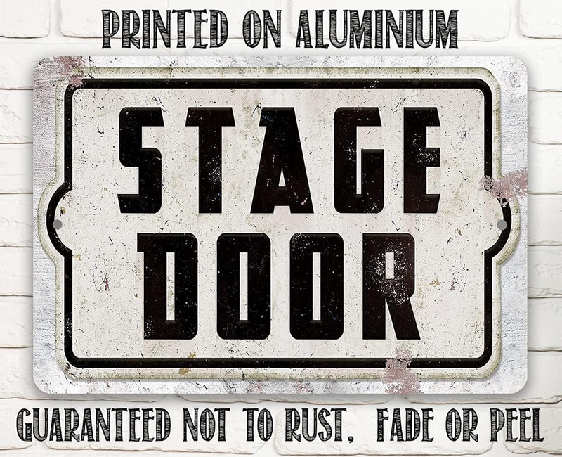 Stage Door Sign - Great for Movie and Musical Theater Decor, Vintage Metal Tin Sign for Concert and Door Entry Recording Sign - 8X12 Use Indoors or Outdoors Durable Rustic Metal Sign