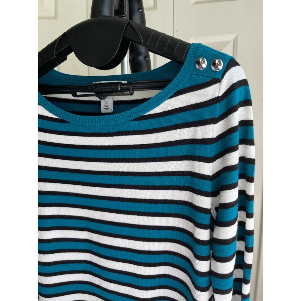 WHBM Henley Tee Shirt Blouse Pullover Striped Sweater, Size S