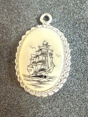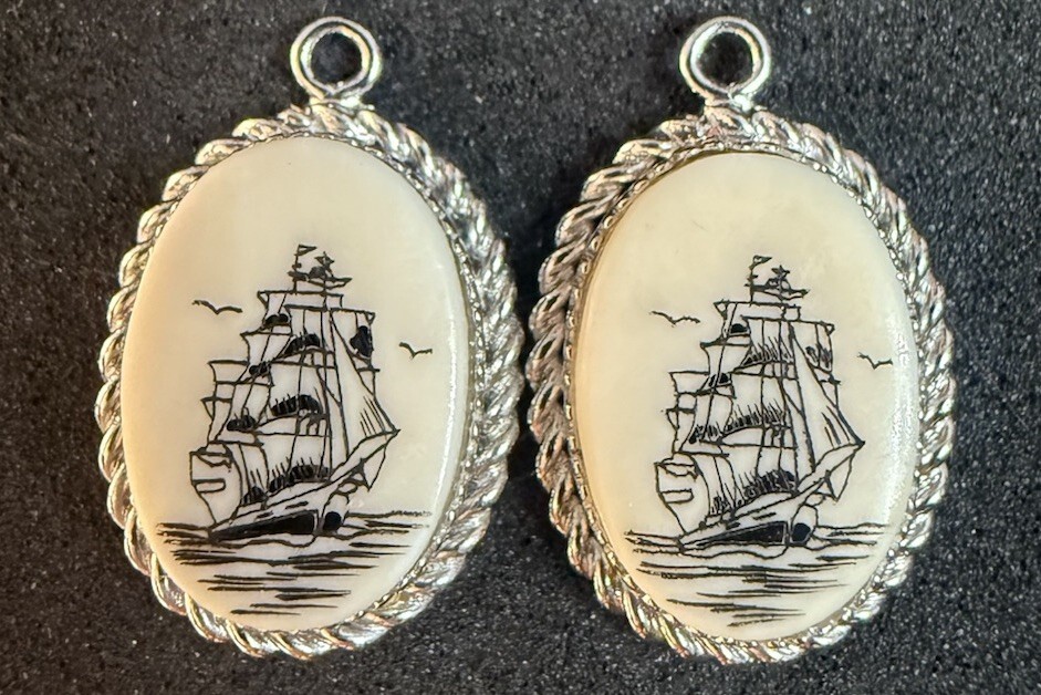 A Pair Of Sterling Silver Faux Scrimshaw Ship Pendant - Excellent Pieces!