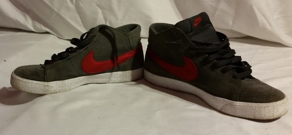 MENS NIKE BLAZER MID TOP LR CASUAL SKATER GREY GRAY MAROON RED 10.5 1/2 SHOES