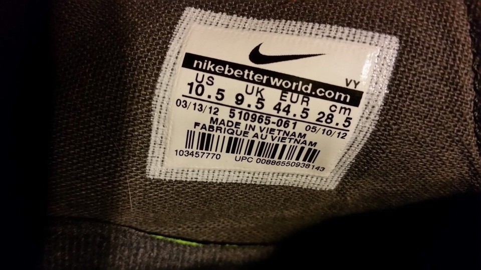 Our shoes are 100 percent Authentic NIKE, we take pride in selling some of the best Brands known in the Industry, Each Shoe have a size Label in each one of them , However we go one extra step and provide exact measurements in our pictures, we provide measurements for the bottom of the shoes as well from top to bottom and side to side. We will list every defect in our Auction. Each Shoe has been Inspected and although some have minor issues we pride our sales on showing every Inch in our pictures. Thank you for looking at our Store, we have sold over 2000 Shoes, and have feedback from our customers to back up our quality, please take a quick minute to check out our feedback for the Shoes we have sold. If we miss any defects, I promise you we wont miss it in our pictures, we take pride in taking 12 pictures of every angle of every Shoe.