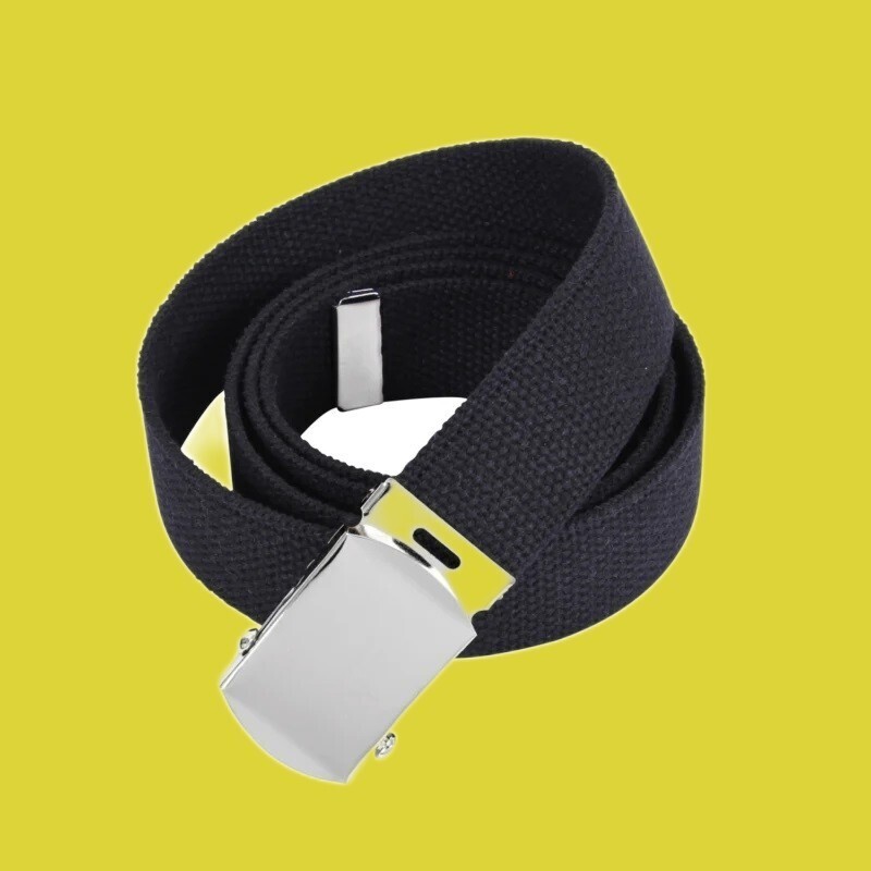 MILITARY ARMY NAVY USMC USN NROTC COAST GUARD ROTC BLACK WEB BELT 47 INCHES ADJUSTABLE STA-BRITE GOLD BUCKLE
