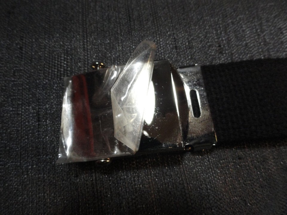 THIS HAS A PROTECTIVE PLASTIC LAYER ON EACH BUCKLE , MY PHOTO MAY LOOK LIKE IT HAS SCRATCHES , BUT IT DOES NOT HAVE SCRATCHES , THAT IS ON THE PLASTIC PROTECTION LAYER. MY BUCKLES HAVE ABSOLUTELY NO SCRATCHES, THESE BELTS ARE FORMATION AND INSPECTION READY.