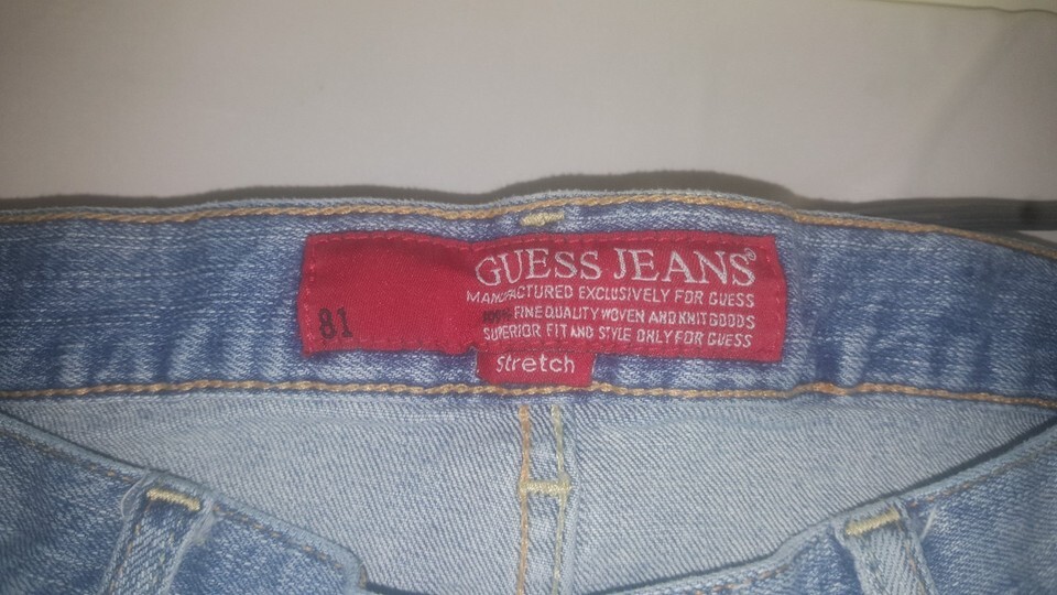 GUESS JEANS STRETCH DISTRESSED STRAIGHT LEG LIGHT BLUE WASH DENIM PANTS 29