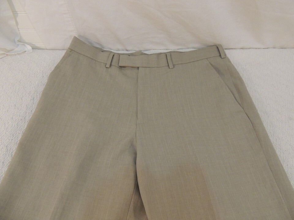 Perry Ellis Pleated Dress Pants Men's 34x32 99% Polyester 1% Rayon Tan 50891