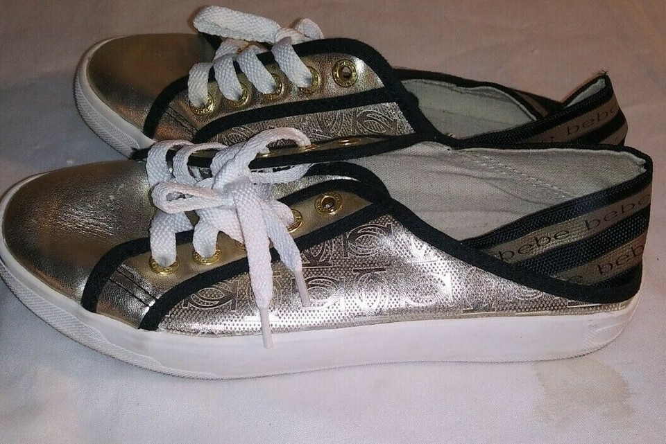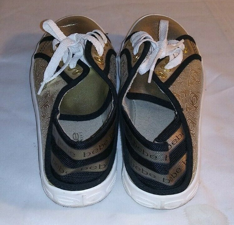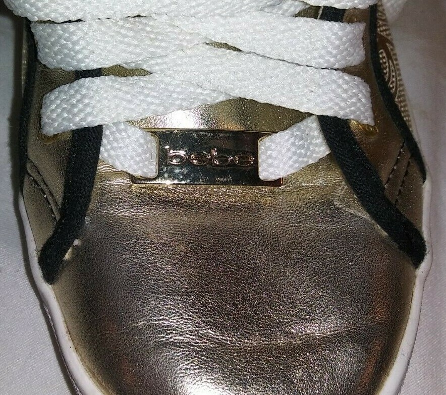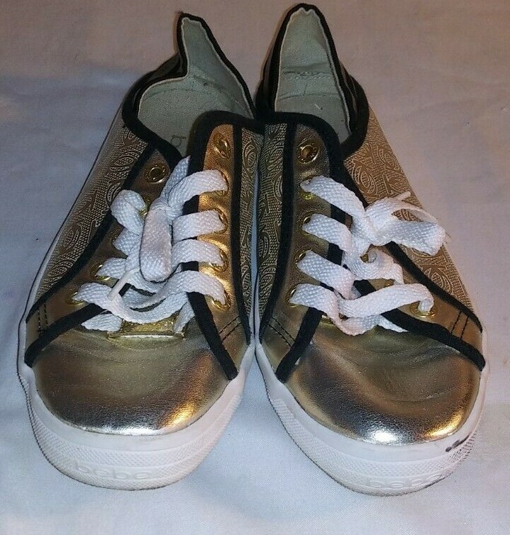 Bebe Sport Sneaker Dacia Womens Tennis Sneakers Shoes Gold Black Metallic SIZE 6