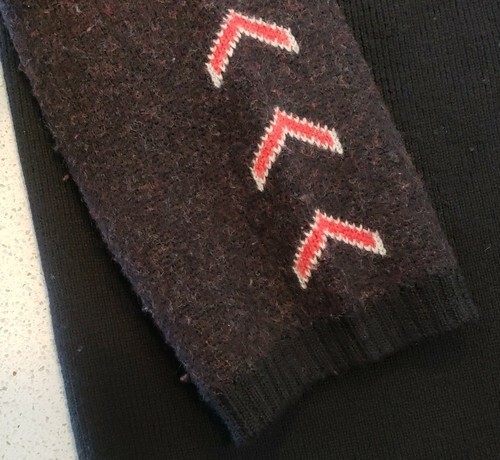 Black Color Block Sleeves with Red Chevron Design Down Each Sleeve