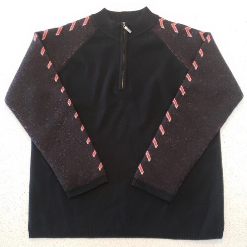 Neve Wool Sweater Mens Size L Black Red Retro 1/4 Zip Ski Henley