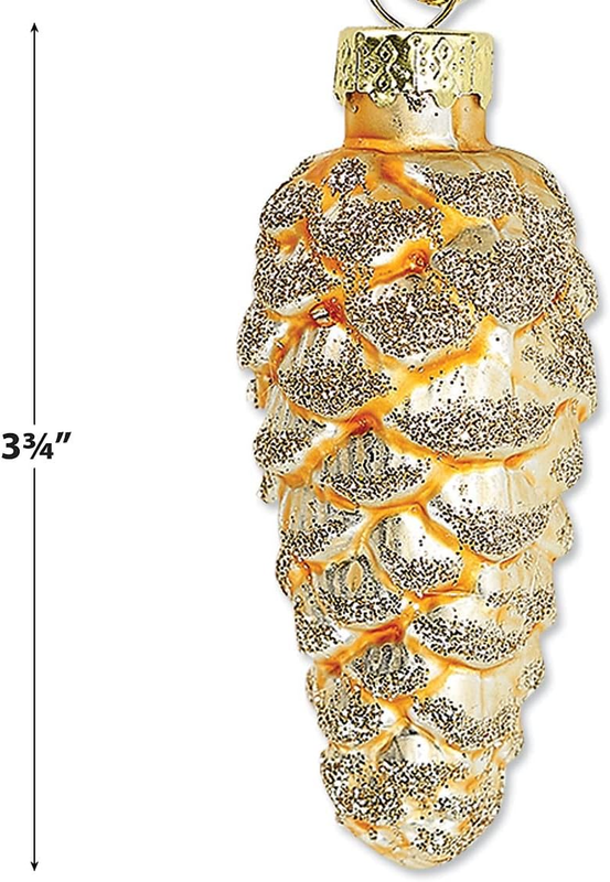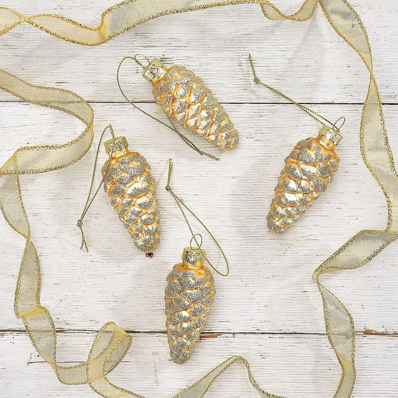 Holiday Glass Pine Cone Ornaments - Set of 12, Sparkling Mini Tree Decorations, Christmas Home Decor, 3 3/4" H
