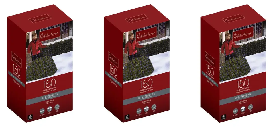 Christmas Net Light Mini Incandescent 150-ct 6' ft Blue, Celebrations 3-PACK