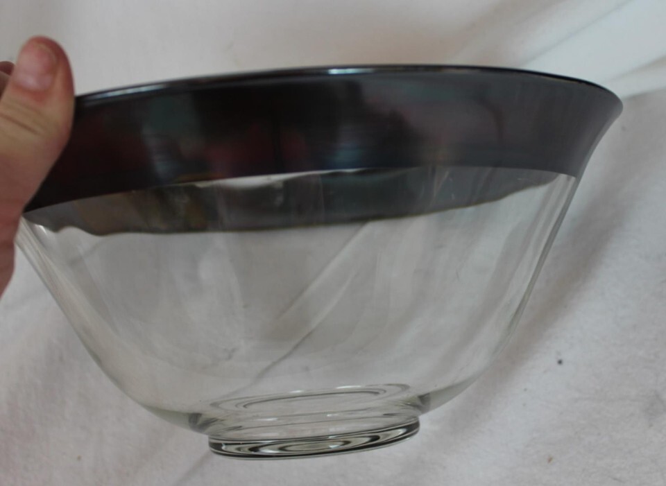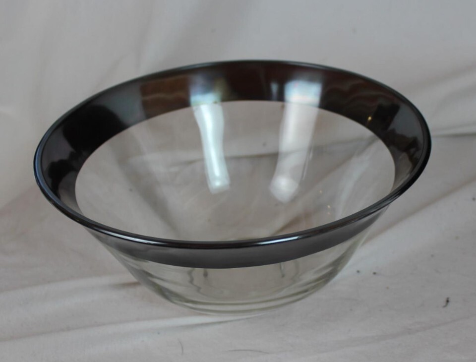 VINTAGE DOROTHY THORPE SILVER BAND GLASS SERVING BOWL DH3193