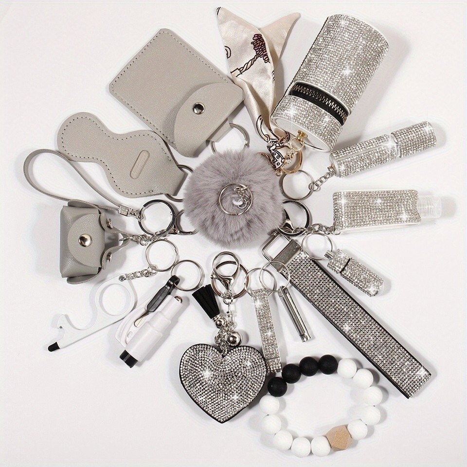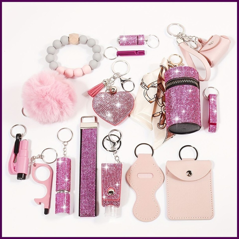 ? 15pcs Women?s Rhinestone Safety Keychain Set ? Stylish, Practical Gift-Ready ?