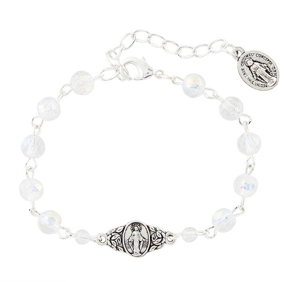 MIraculous Medal Crystal Beads 1 Decade Rosary Bracelet, New #MD-072