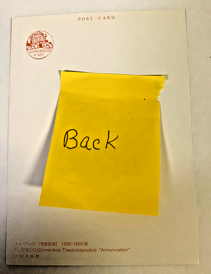 This beautiful image come from the famous painting of El Greco from Madrid, Spain. It depicts the annunciation of the Virgin Mary as she is visited by the angel.