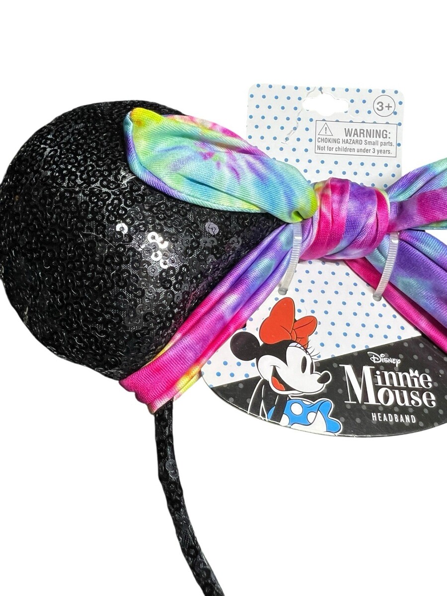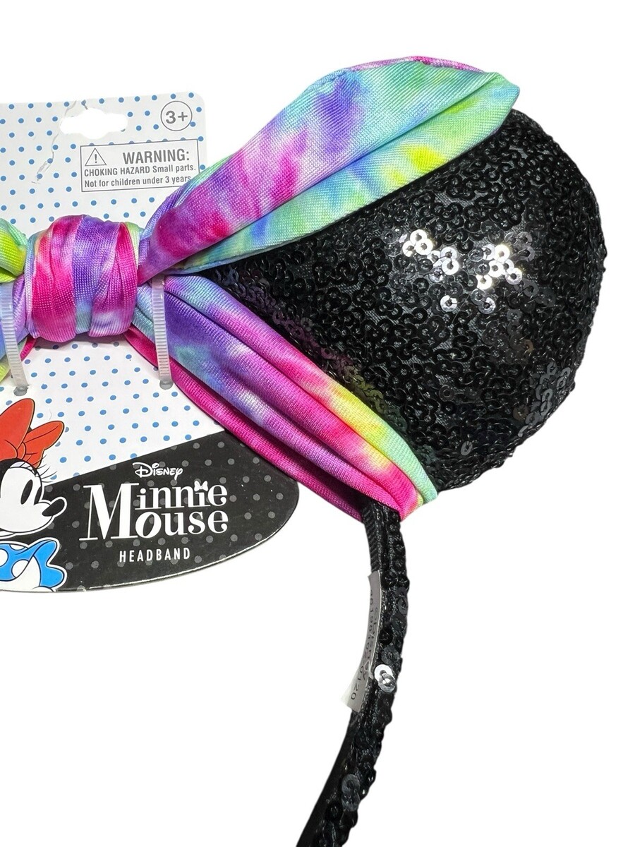 Disney Minnie Mouse Ears Headband Black Sequin Tie Dye Bow