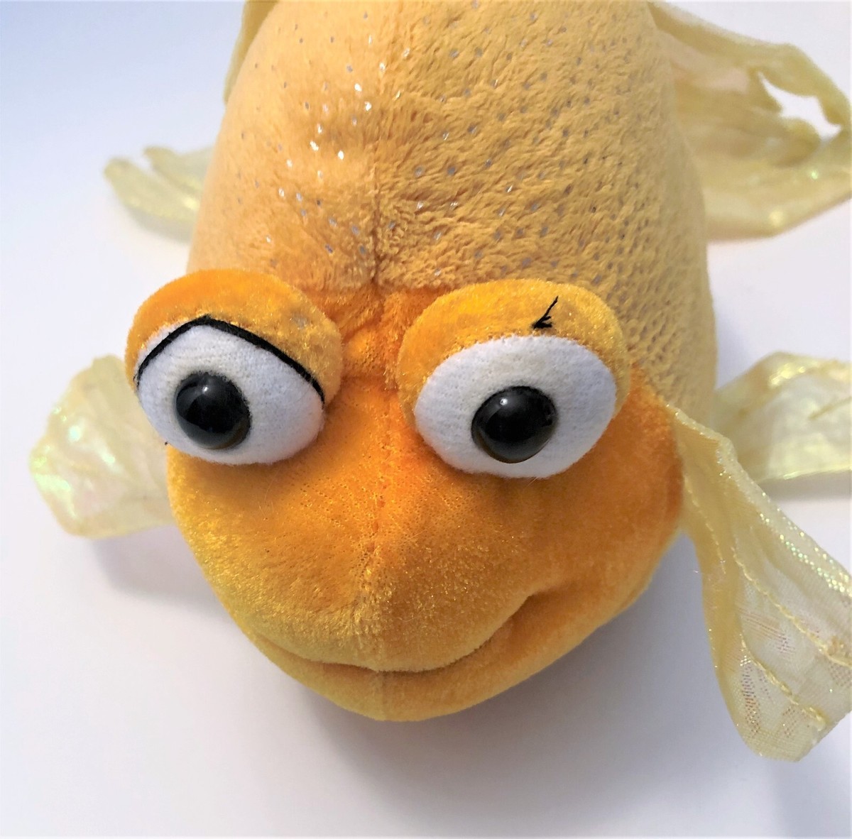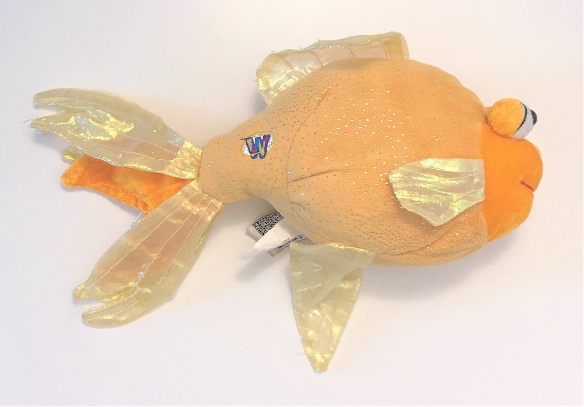 10 inch Ganz Webkinz Green Fantail Goldfish Plush Stuffed Animal. There is no longer an online code. Toys are in good, clean, pre-owned condition. The toy does have some string missing on the left eyelid.