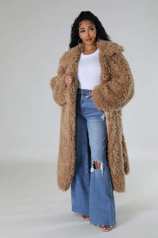 Lift your cold-weather wardrobe with our Fuzzy Heavy Coat, a luxurious blend of comfort and fashion that wraps you in cozy elegance. The tie belt adds a touch of sophistication to this generously sized coat, ensuring a comfortable fit that envelops you in warmth without compromising on style.