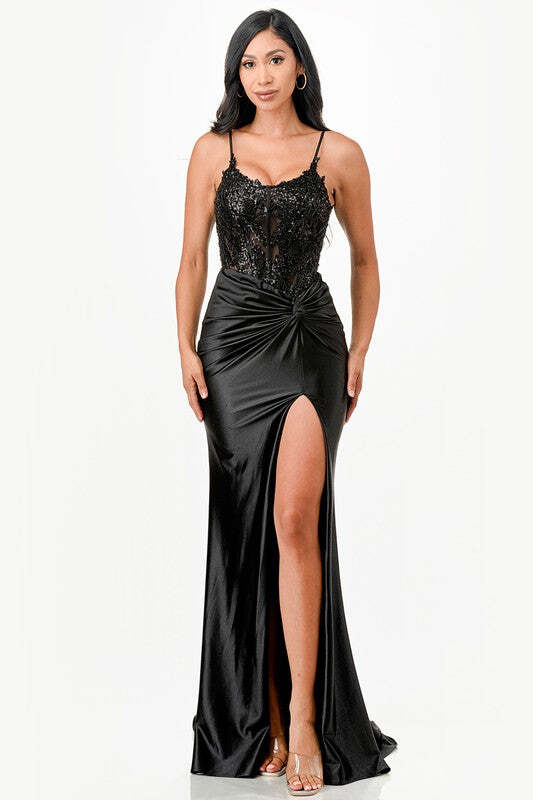 Sequin Lace & Satin Front Twist Long Dress and similar items