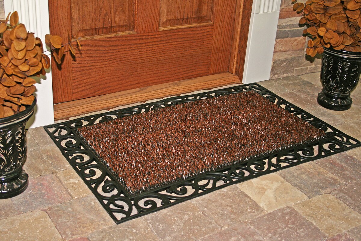 GrassWorx Clean Machine Wrought Iron Stems and Leaves Doormat, 24" x 36", Coffee