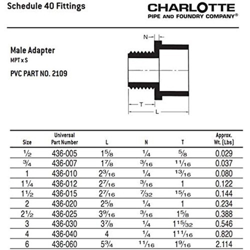 Charlotte Pipe 3/4 Sch 40 Male Adt Mptxs and similar items