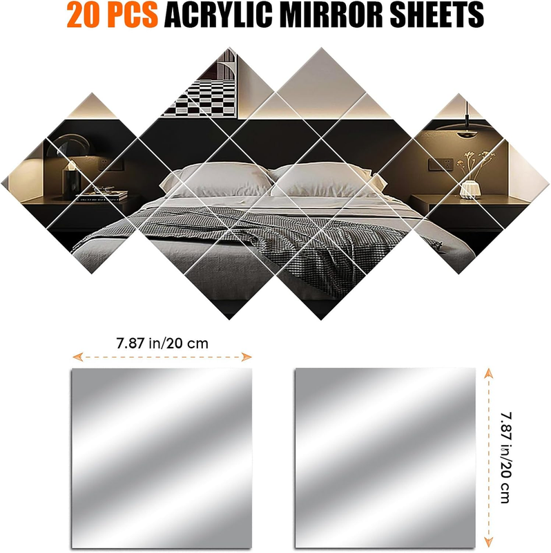 8/'' X Acrylic Flexible Mirror Sheets, 20 Pack Self Adhesive Tiles Square Cuttab