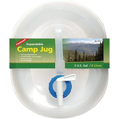 The expandable 2-gallon water jug from Coghlan's features an on/off spigot, screw-on cap, and comfortable carry handle. Made of durable polyethylene, it expands as needed and collapses for easy storage and travel. Coghlan's makes the outdoors more comfortable and enjoyable with over 450 accessories for camping, hiking, fishing, and RVing -- from cooking gear to first aid kits, insect netting, firestarters, tent repair, and more.