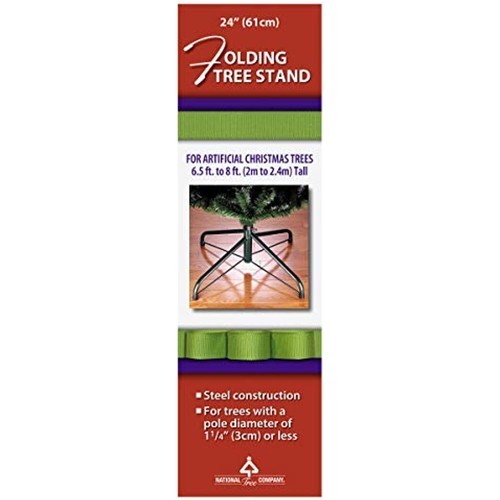 This folding metal tree stand is for use with 6. 5 ft. To 8 ft. Tall artificial trees with 1. 25 inch diameter center pole. This stand features sturdy steel construction and folds flat for convenient storage. Included single thumb screw for securing stand to tree pole.