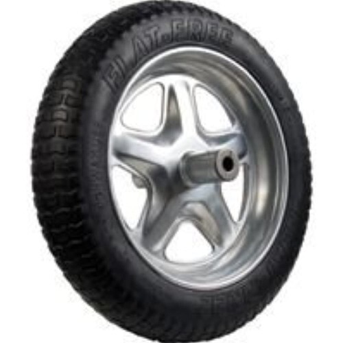 No more flats. 15.5 in Sport Flat Free wheel and tire assembly 6 in hub. Height: 15 1/4 in. Length: 15 1/4 in. Width: 6 in.