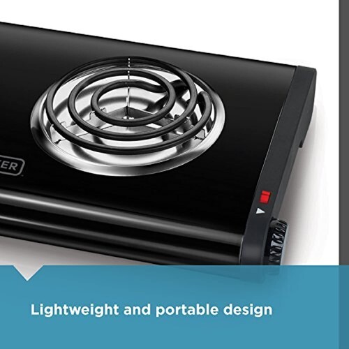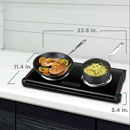 The BLACK+DECKER Double Burner Portable Buffet Range is perfect for potlucks and for cooking for a crowd. The easy-to-use design is compact for lightweight portability with a variable temperature control knob so you can control each burner independently to cook or keep food warm. The single burner coils distribute heat evenly, while a handy power indicator light provides added peace of mind and ease during use.