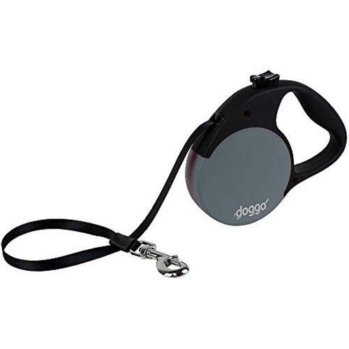 Doggo Everyday Retractable Dog Leash, 16' Long Belt, Large for Dogs Up to 110 lbs, Grey with Black Soft Grip Handle
