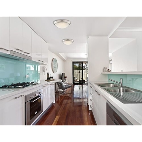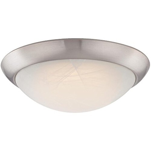 The traditional Westinghouse 11-inch ceiling fixture combines energy-efficient LED technology with a sleek flush mount design. A white alabaster glass shade provides beautiful illumination and a luxurious brushed nickel finish trim adds the perfect finishing touch. With no bulbs to replace, the dimmable 15-watt integrated LED will bring you 27 years of energy-efficient lighting. The compact size of this ceiling light makes it ideal for smaller spaces, like hallways and laundry rooms. The LED flush mount fixture measures 3-7/16 inches high by 11 inches in diameter. This Westinghouse indoor ceiling fixture is ETL/CETL listed for safety. It is backed by a 5-year limited manufacturer's warranty against defects in materials and workmanship. Westinghouse is a trusted, global brand. Westinghouse knows lighting and offers products with exceptional quality, reliability and functionality. Product reference number 63088.