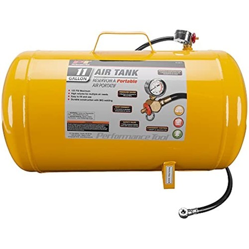 Performance Tool W10011 Hi-viz 11-Gallon Horizontal Portable Air Tank With Tire Air Chuck , Yellow