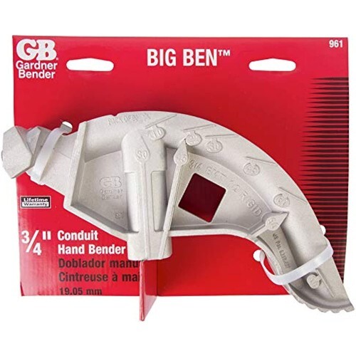 GBs new series of Big Ben aluminum hand benders has improved traditional hand benders by enlarging the hook, increasing the foot pedal size and clearance, highlighting the markings and incorporating a dual sight-line system for bending on the floor or in the air. GBs new Big Ben series offers industry standard markings to simplify the contractors job Made of rugged, heat-treated aluminum, the Big Ben series is backed by a lifetime warranty and is available in the most common sizes of 1/2", 3/4" and 1".
