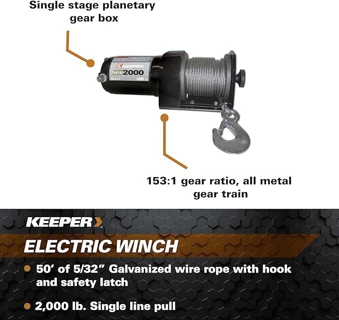 KEEPER Electric Winch, 2,000 lb. Single Line Pull, 12V DC, Black |