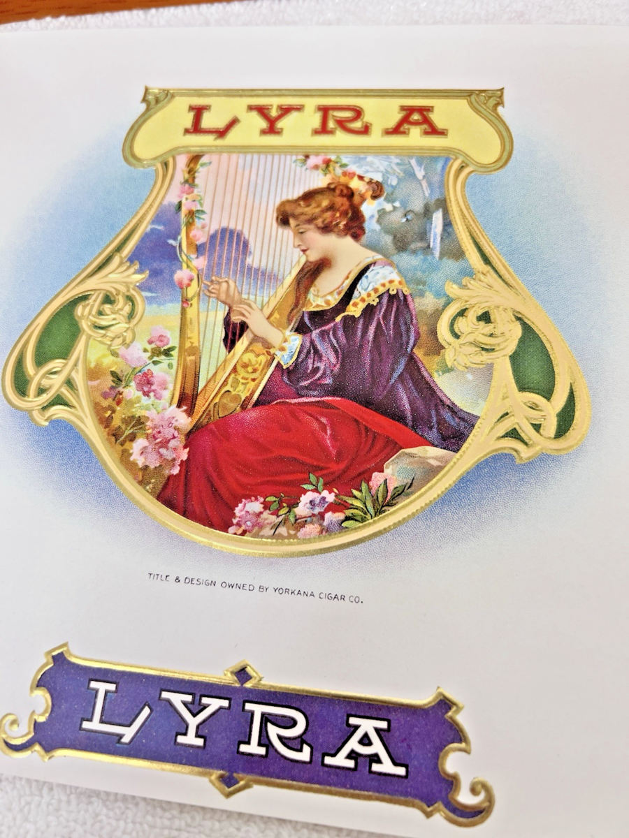 Lot of 6 Antique Cigar Box Tobacco Labels Lyra Porto-Vana Blue Ribbon More
