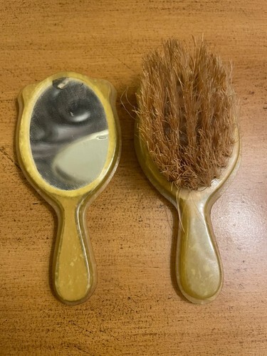 Vintage Hand Held Vanity Mirror and Hair Brush Set of 2