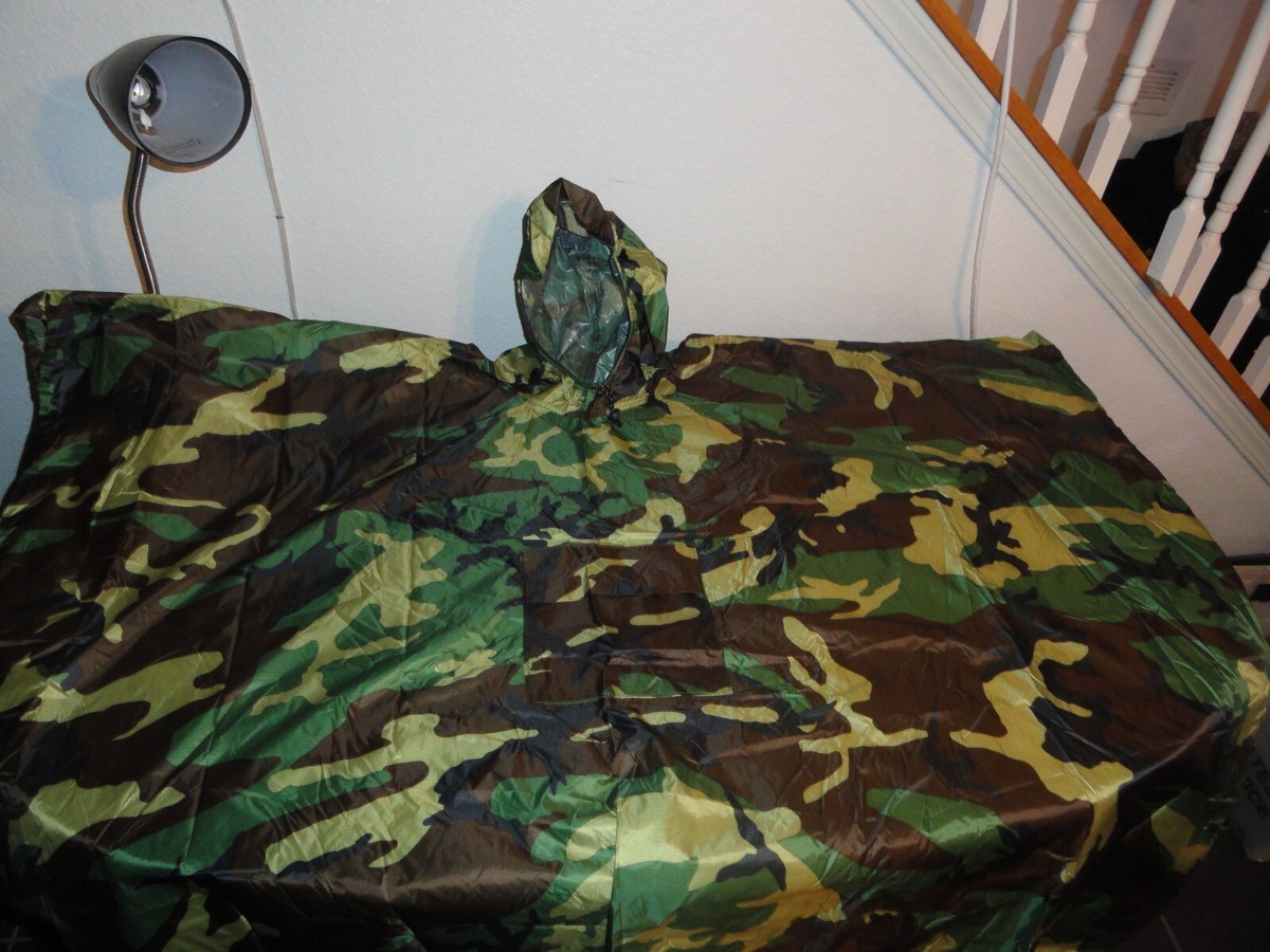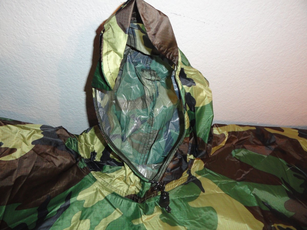 NEW WATERPROOF USMC WOODLAND BDU MILITARY RAIN PONCHO WET WEATHER SHELTER HALF