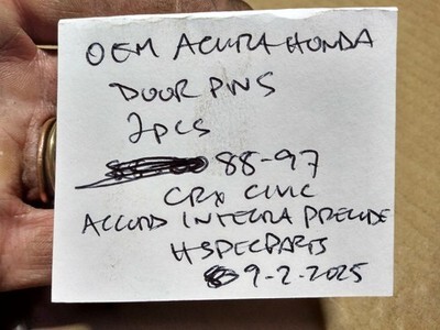 GOOD USED CONDITION. 2 OEM DOOR STOPPER PINS FROM A 1997 ACCORD. FITS MOST 1982-1997 ACURA AND HONDA MODELS. SHIPS USPS WITHIN A BUSINESS DAY OF PAYMENT.