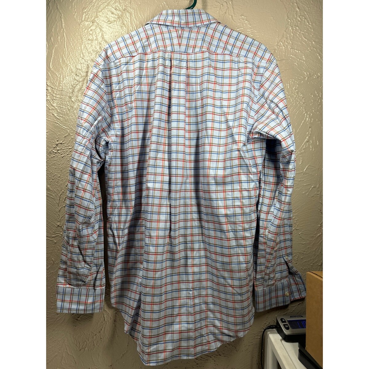 Lands' End Mens Long Sleeve Button Up Dress Shirt Blue Red Plaid Cotton 16-35