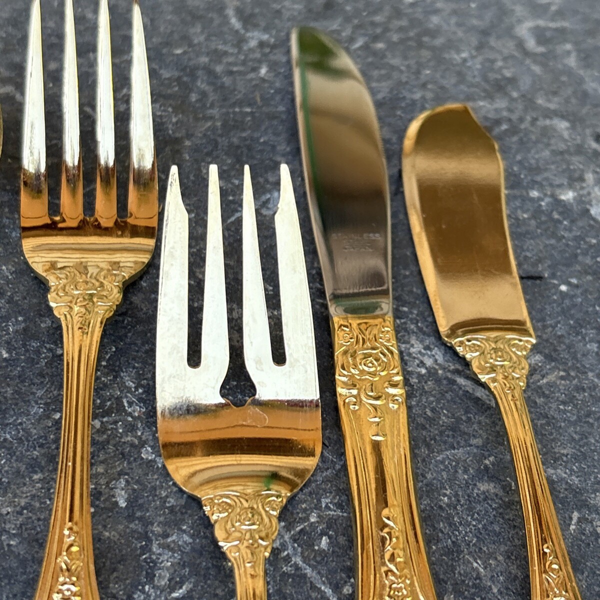 Northcraft 10K Gold Plated Rose Pattern Flatware Set