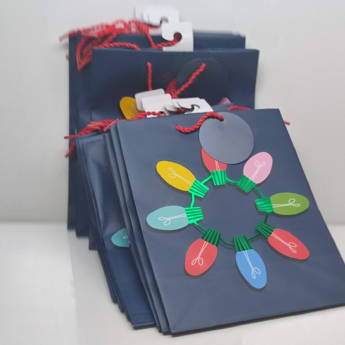 12 Hallmark Holiday Christmas Gift Bags 8X4x10 Colorful Bulb Design Medium Paper